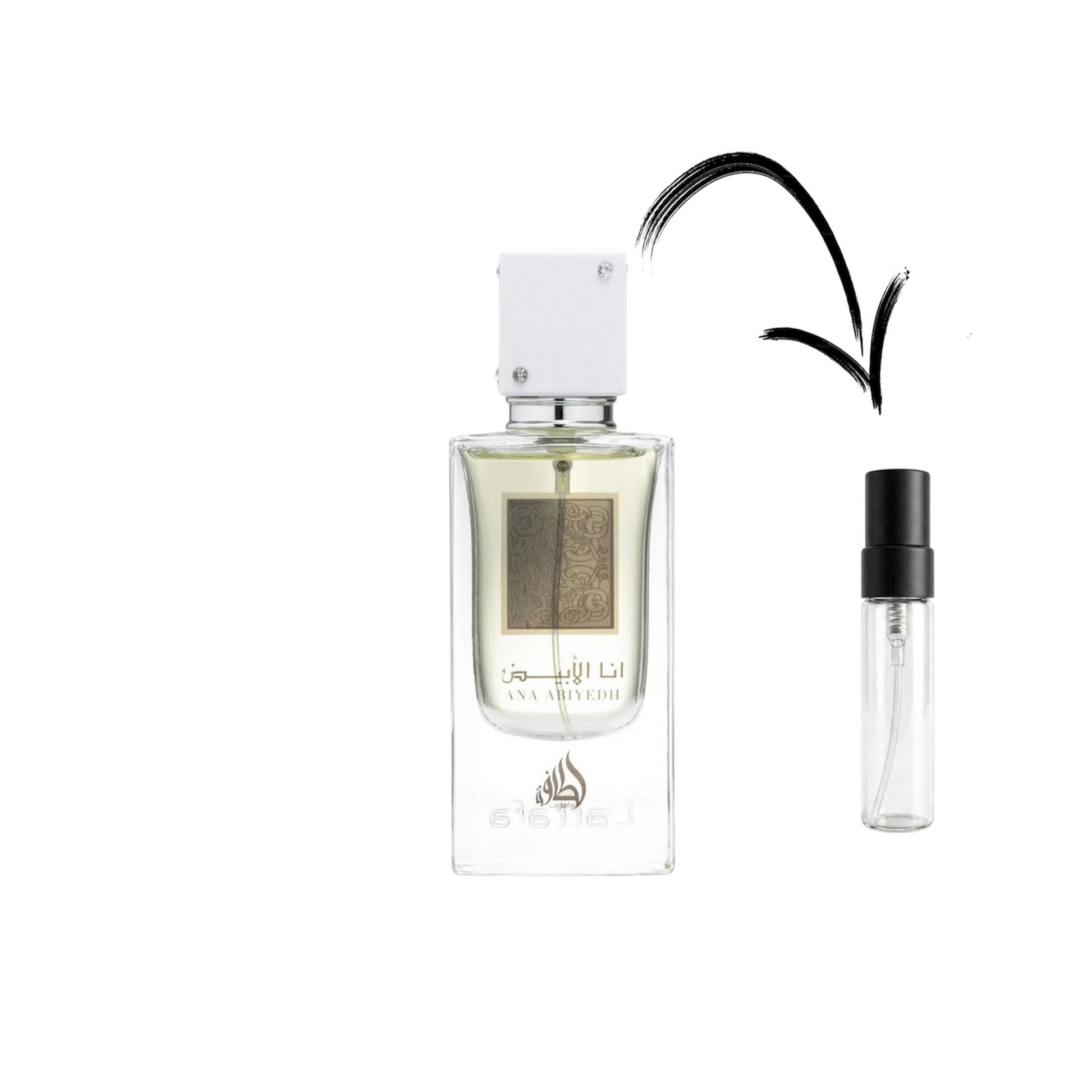Ana Abiyedh de Lattafa es una fragancia que representa equilibrio, modernidad y distincción. Su nombre significa "Yo soy blanco" en árabe, evocando pureza y elegancia. Suave, cremosa y envolvente, es perfecta para quienes buscan un aroma limpio y sofisticado.