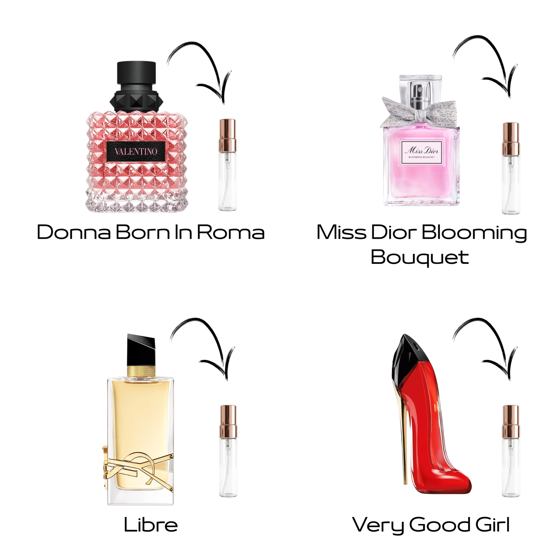 🌸 Incluye (un decant de cada perfume + 1 decant de regalo):