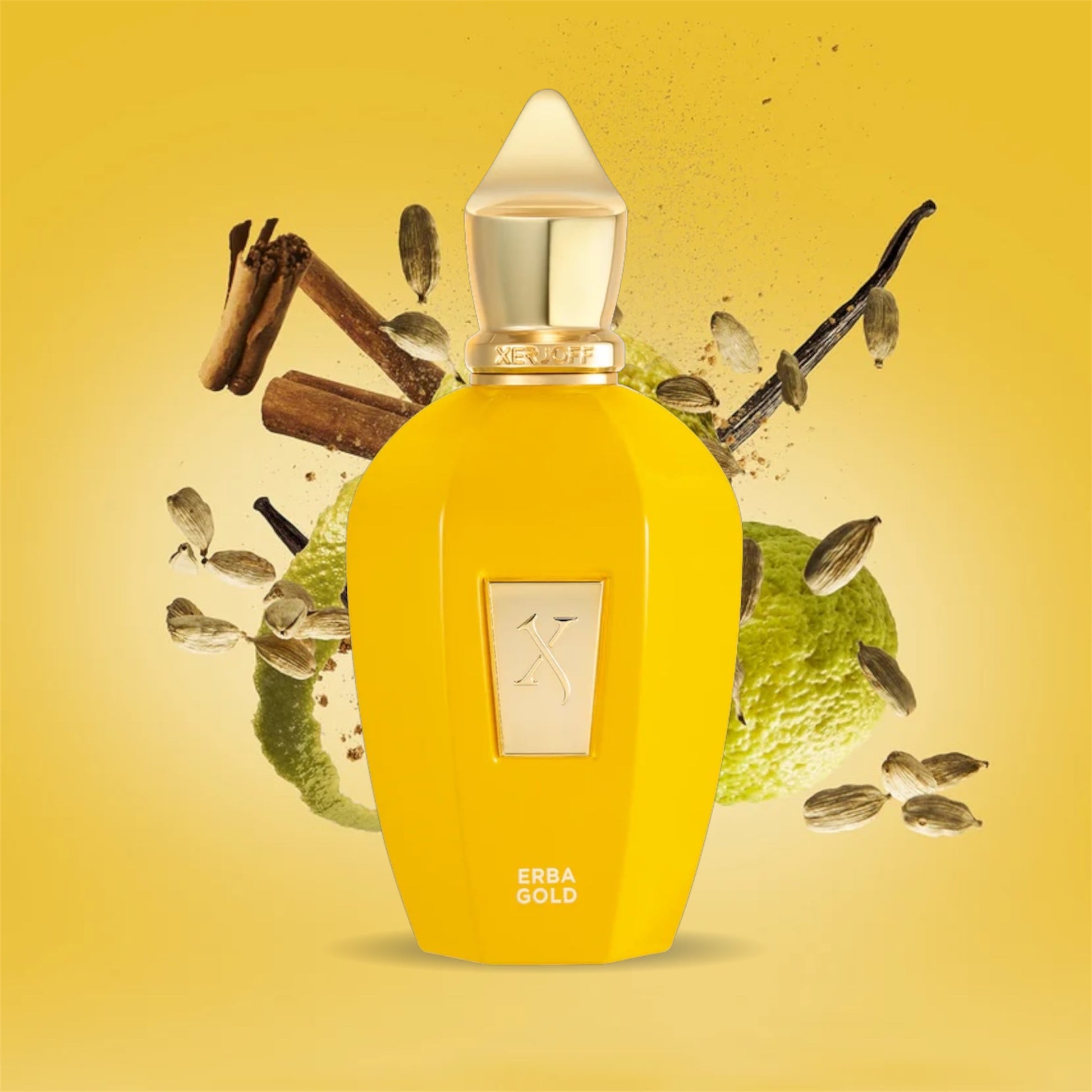 Erba Pura Gold de Xerjoff es una versión dorada y más lujosa del icónico Erba Pura. Una fragancia unisex frutal y oriental que combina una apertura cítrica y especiada con un corazón jugoso de frutas frescas y una base cálida y sensual de vainilla, almizcle y ámbar. Exuberante, dulce y de proyección excepcional.